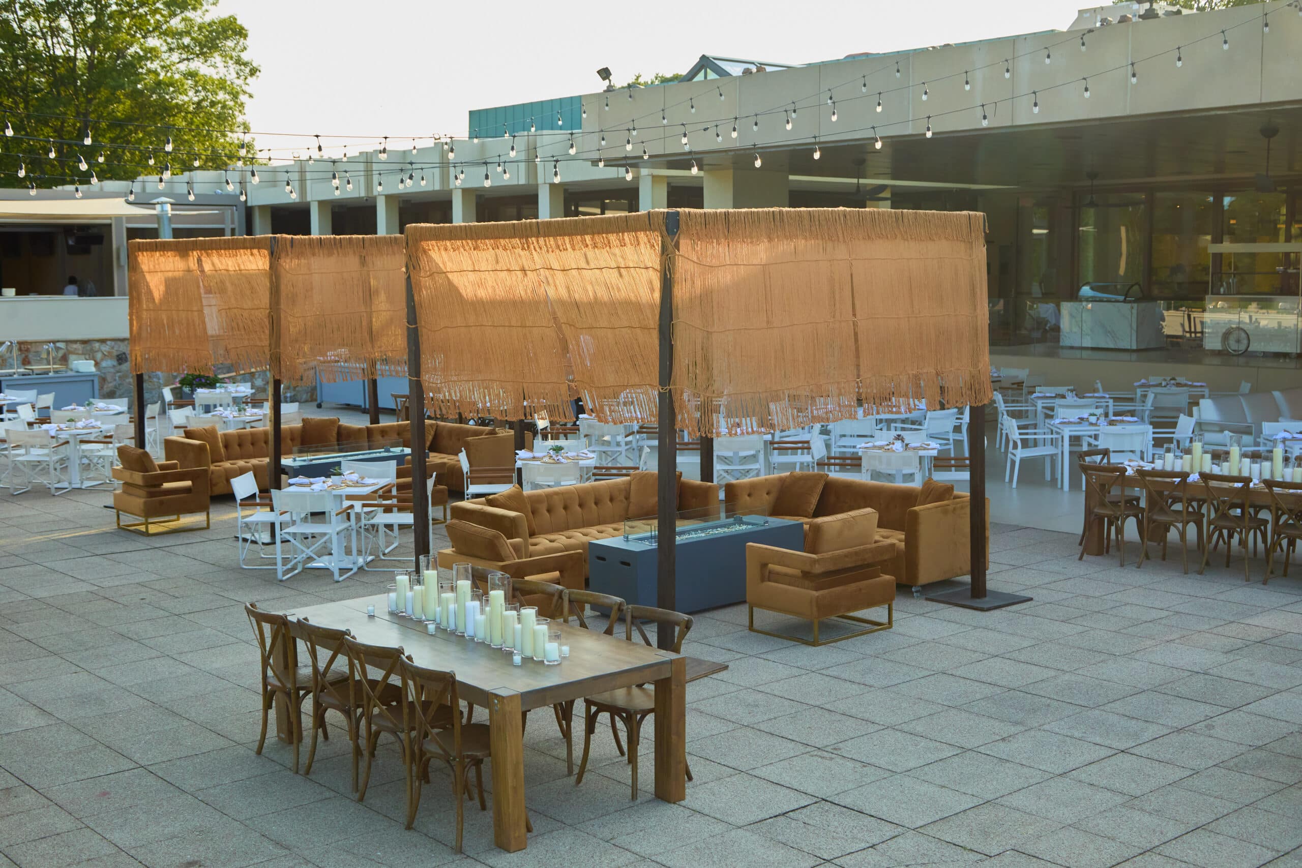 Custom Overhead Installations: To manage the summer heat while maintaining the “island” aesthetic, we designed and installed custom ceiling treatments that provided shade without sacrificing the open-air feel.