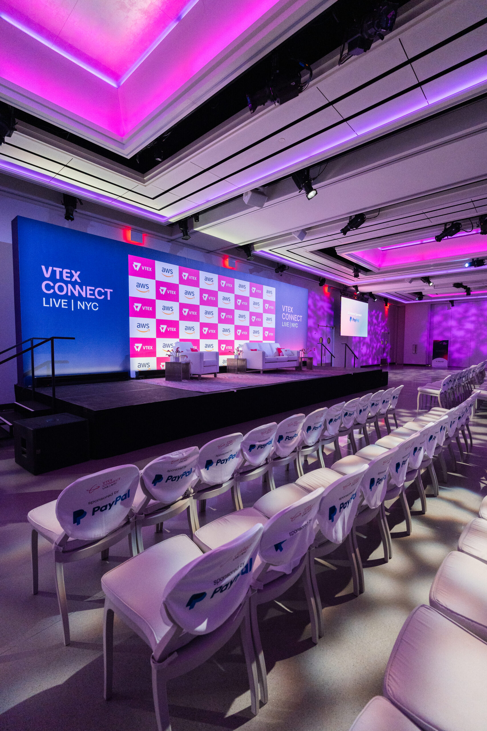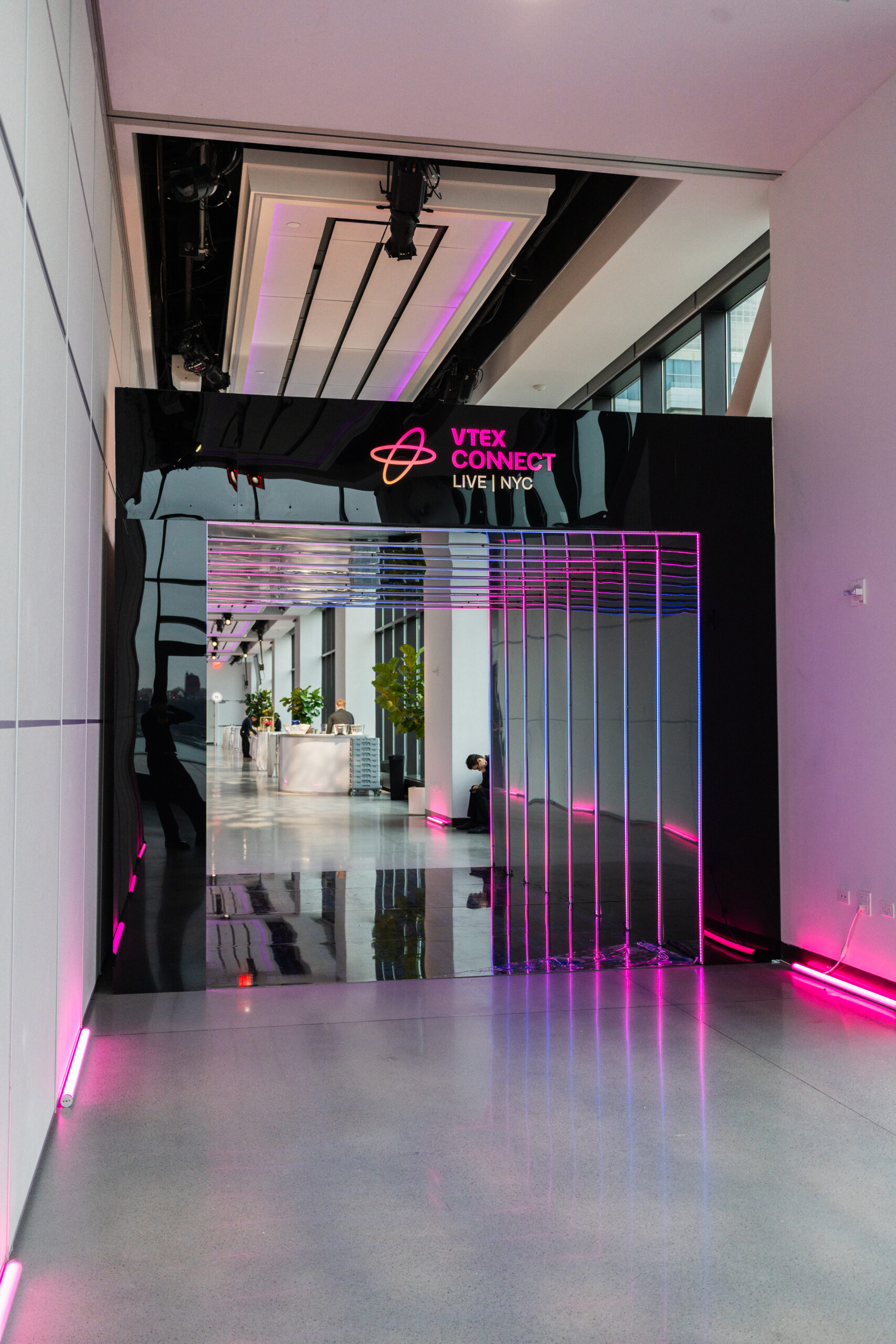 VTEX needed a physical presence that felt as innovative as their software. Set against the panoramic Hudson River views of The Glasshouses, the challenge was to create a design that didn’t compete with the skyline but commanded the room. As the lead scenic fabrication and design partner, Geo Events was responsible for translating VTEX’s digital brand into a tangible, high-end physical environment.