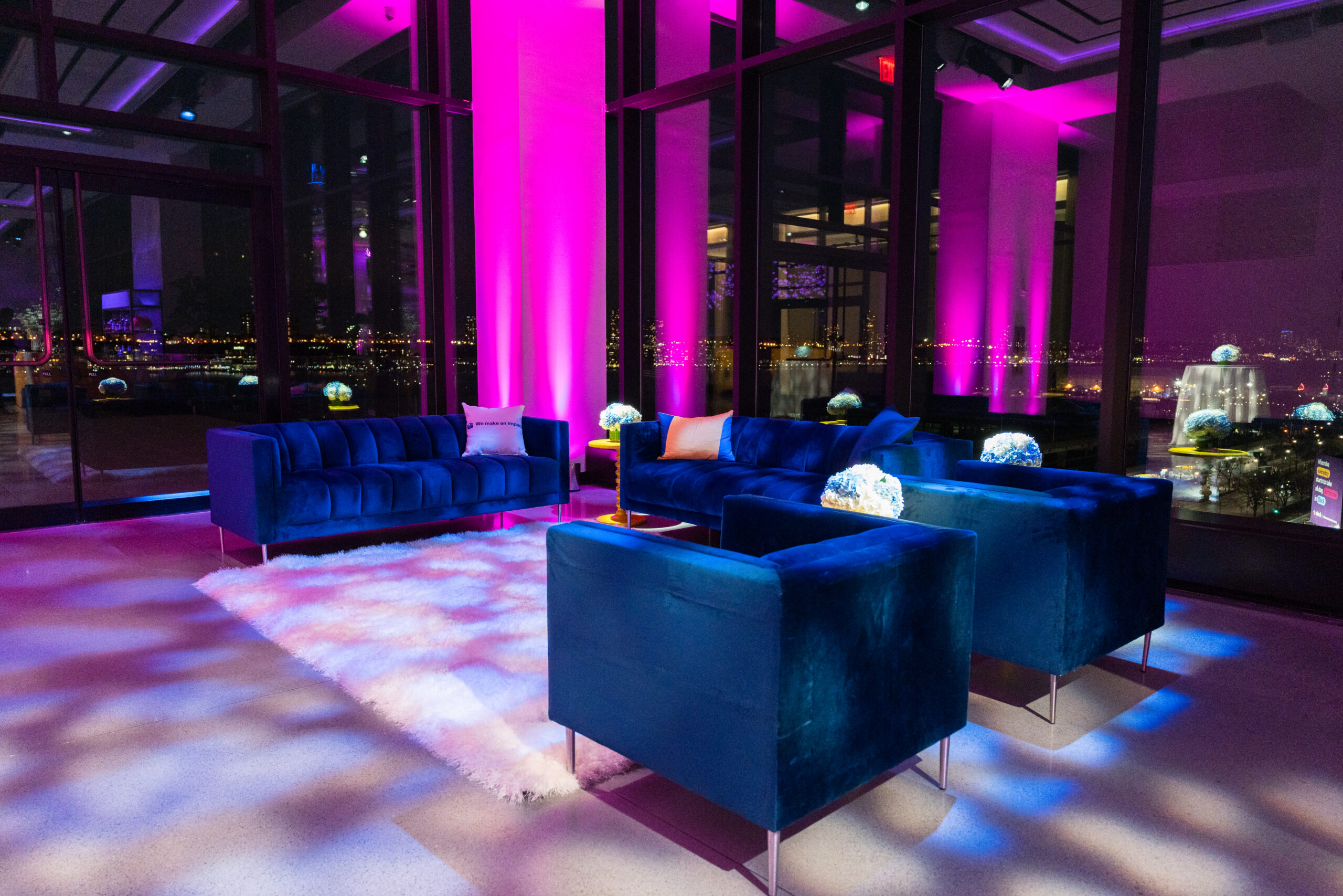 We prioritize “low-profile” and modern silhouettes. Because the venue features massive windows, we select furniture that provides luxury and comfort without blocking the iconic New York City views.