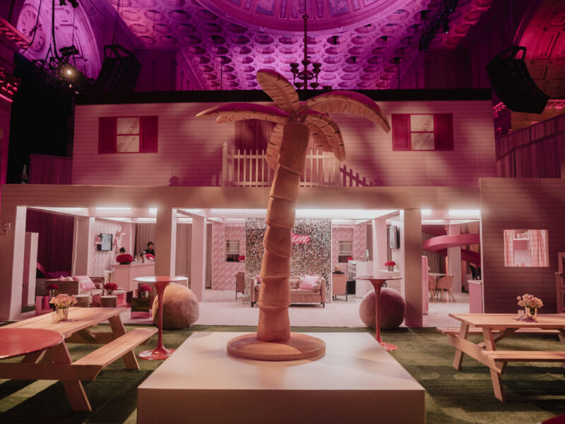 GEO Events' in-house fabrication team — we design, engineer, and build custom scenic and millwork under one roof, which is what made the two-week turnaround possible.