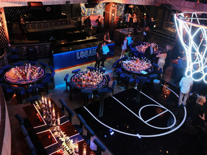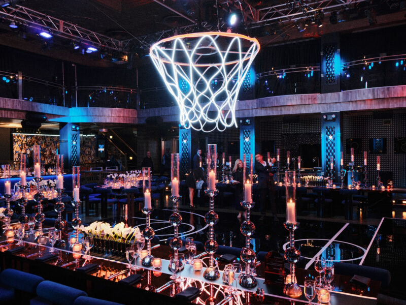 Translating basketball culture into an immersive event environment without descending into cliché or generic sports-bar aesthetics. The client wanted an experience that honored the sport’s energy and visual language while maintaining the sophistication of a high-end celebration — an environment where sports iconography felt elevated, not juvenile.